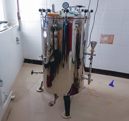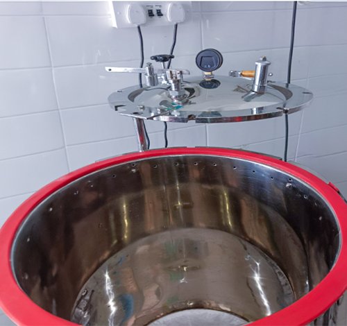 It has double chamber with outer jacket made of stainless steel and inner chamber made of 316 stainless steel sheets.